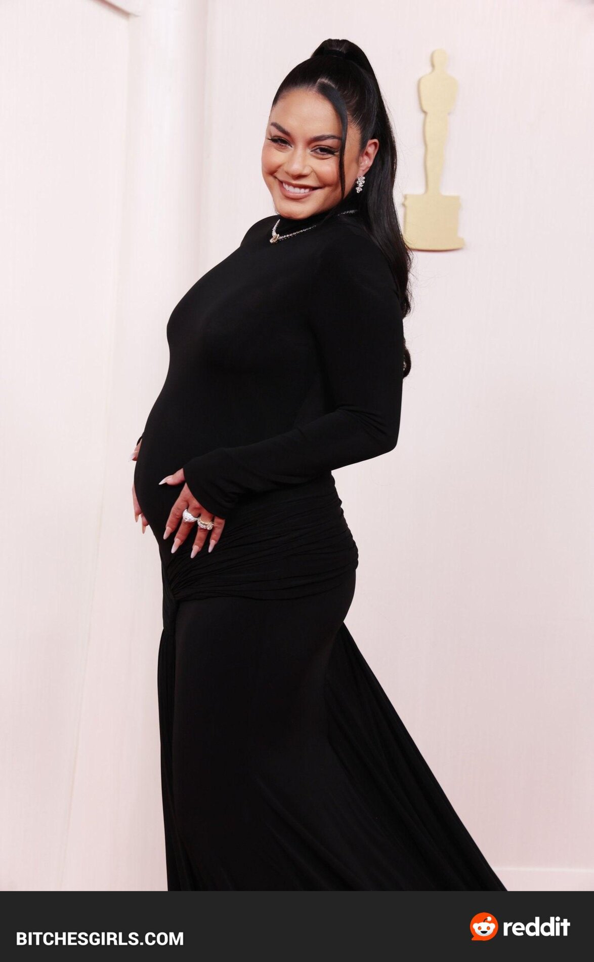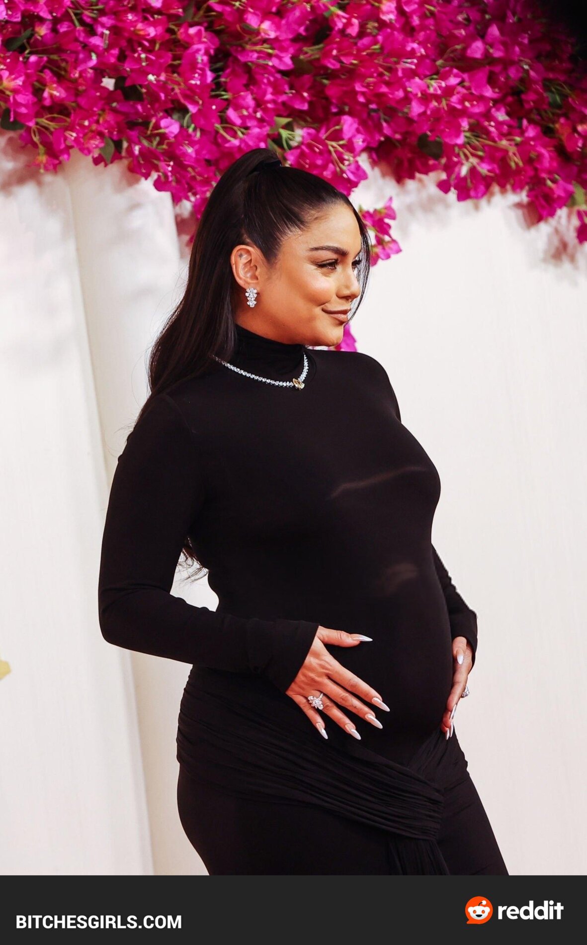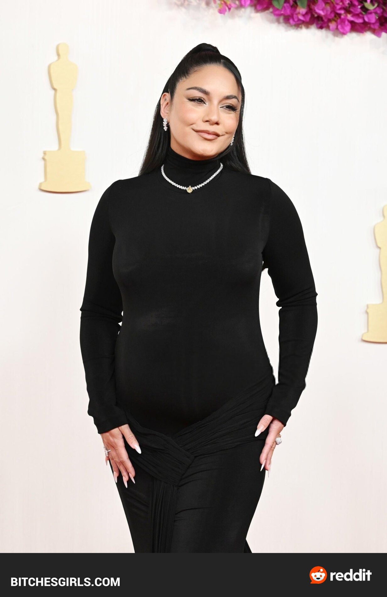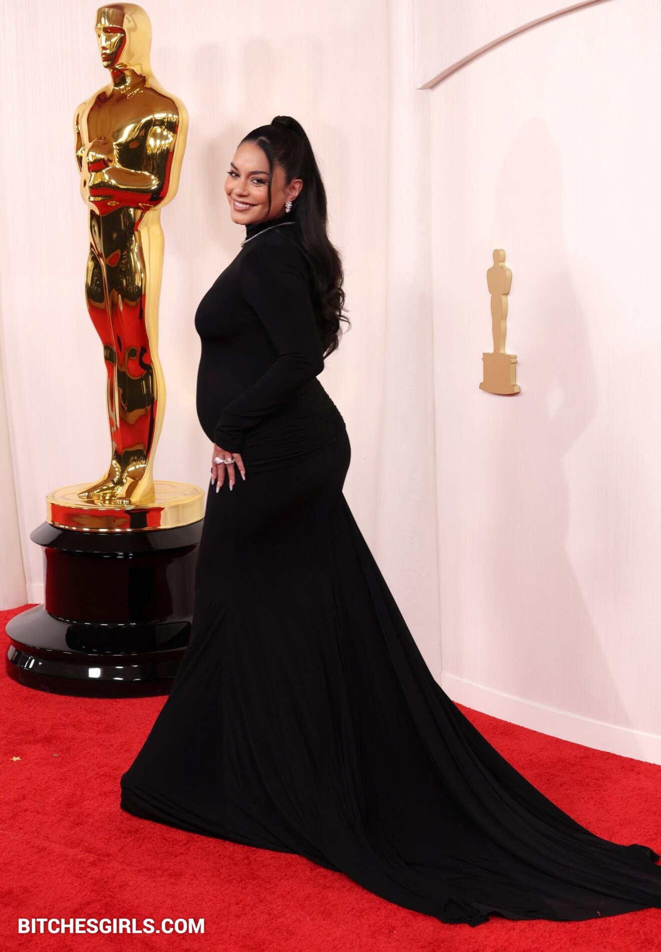Vanessa Hudgens, an American actress and singer, made her feature film debut in Thirteen and rose to fame as Gabriella Montez in the High School Musical series. Born on December 14, 1988, in Salinas, CA, Hudgens announced her pregnancy with husband Cole Tucker at the 2024 Oscars. The couple got engaged in February 2023 and married in December of the same year. Raised as a Roman Catholic, Hudgens now identifies as a non-denominational Christian. She boasts a massive following on Instagram and is known for her roles in various films and TV shows. Vanessa Hudgens stunned in a sleek black dress that showcased her baby bump on the Oscars red carpet.