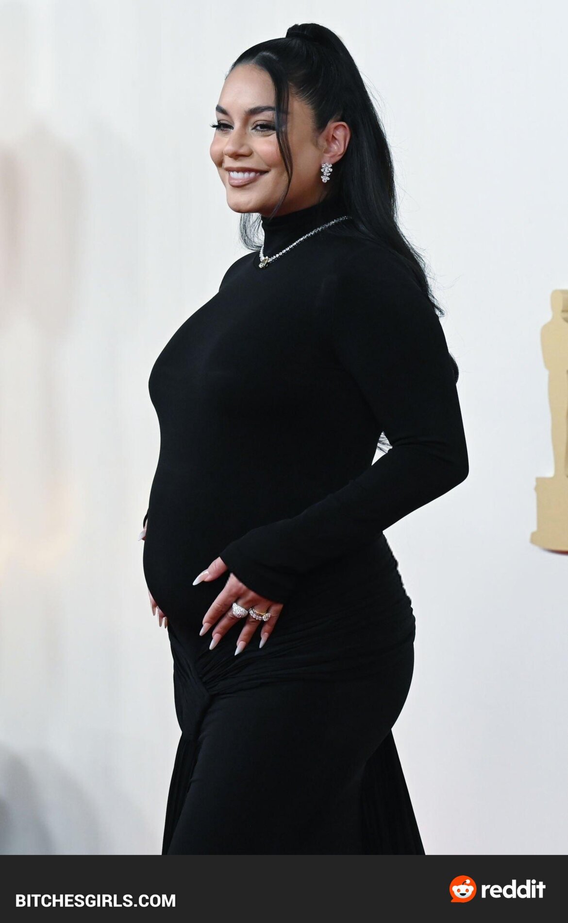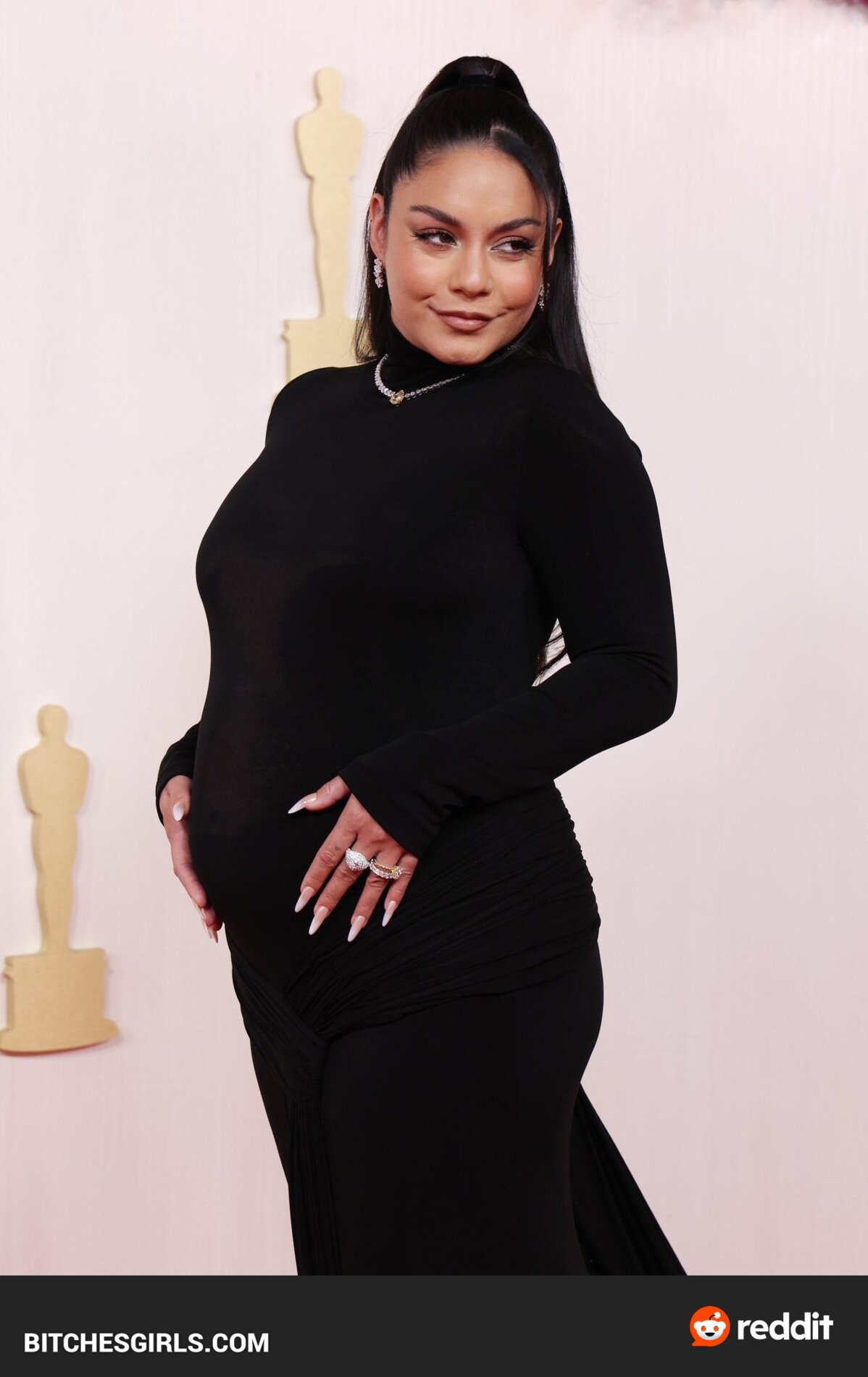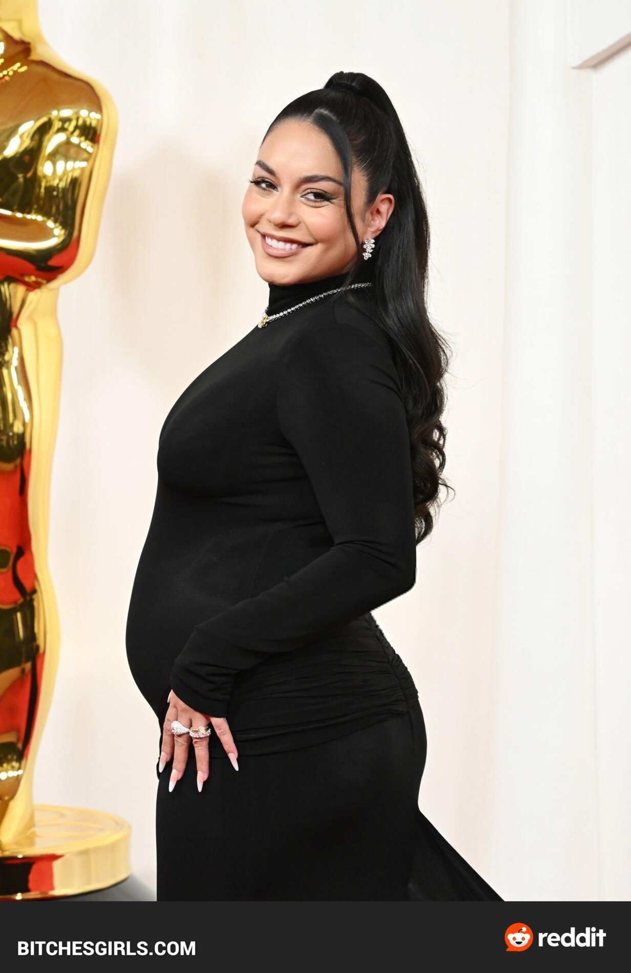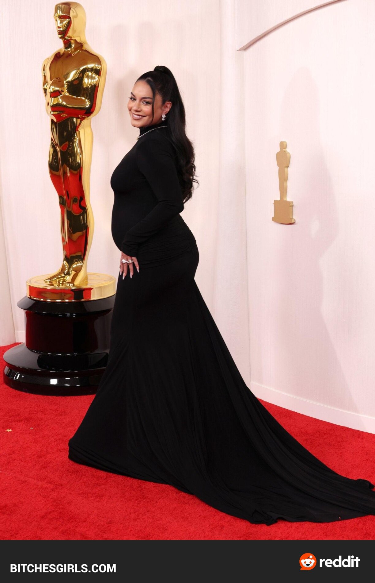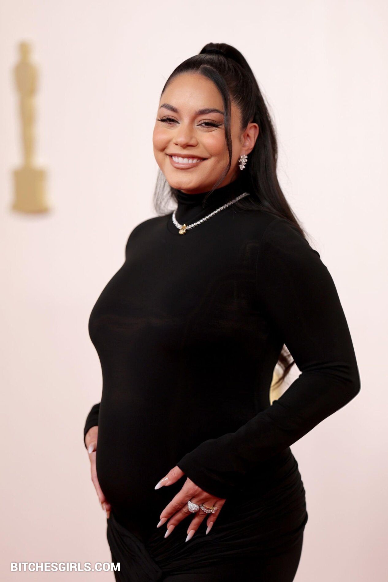 Vanessa Hudgens, an American actress and singer, made her feature film debut in Thirteen and rose to fame as Gabriella Montez in the High School Musical series. Born on December 14, 1988, in Salinas, CA, Hudgens announced her pregnancy with husband Cole Tucker at the 2024 Oscars. The couple got engaged in February 2023 and married in December of the same year. Raised as a Roman Catholic, Hudgens now identifies as a non-denominational Christian. She boasts a massive following on Instagram and is known for her roles in various films and TV shows. Vanessa Hudgens stunned in a sleek black dress that showcased her baby bump on the Oscars red carpet.