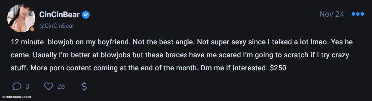 Nude influencer Cincinbear onlyfans naked pics from onlyfans leaks. This is thots only fans Cincinbear is undressing her tits on adult album and nude premium content only fans leaked from from April 2021 for free on bitchesgirls.cam. Thot Cincinbear gone wild. Cincinbear hot photoshoots You can find here more of her leaks than on reddit and subreddits. Do you know what is real name of Cincinbear?. She is definetly older than 18, but do you know what is Cincinbear age?